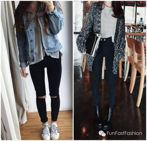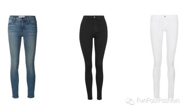 2.1 蓝色和黑色的紧腿牛仔裤各1条(腿特别细的也可以将黑色改成白色),最好再额外备一条非基本款的牛仔裤,比如boyfriend、微喇、或者轻微distressed(就是稍微磨出一个道道或者一个小洞的那种)