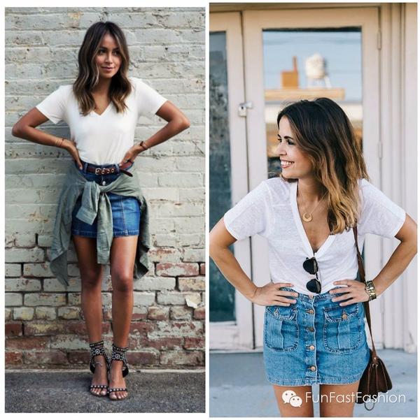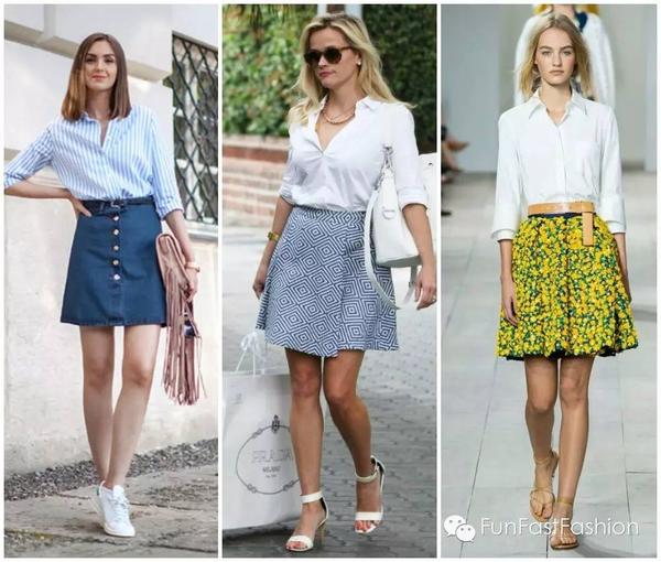 A字裙或包臀裙(不是特别推荐廉价伞裙,真的显得很廉价),牛仔或其他纯色至少有1款,最好再备一条花色短裙