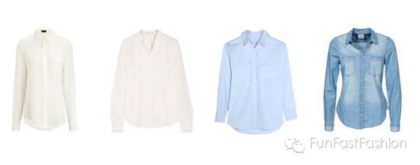 棉质白衬衫、丝质白衬衫、棉质蓝衬衫、牛仔衬衫,4款当中至少有2款。我个人更推荐后3者,棉质白衬衫其实是衬衫里面最挑人的衬衫。