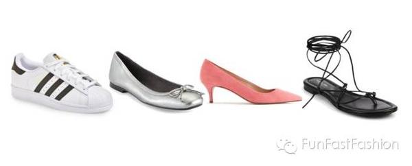 运动鞋、平底鞋、凉鞋、尖头高跟鞋各一双