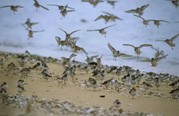 浦边海岸是岸鸟们栖息的最佳选择。因为海岸边宽阔的环境和足够长的潮间带,以鹆鸻科为主的鸟类们能够有足够宽阔的觅食环境。每日涨潮和退潮的时间段,岸鸟们就会在泥滩地里寻找小鱼小虾和螃蟹,随着潮水不断上涨,岸鸟们也会随着潮水不断向前,海岸旁有一些比较高的地方,涨潮的时候就有地方让它们休息。所以每天涨潮和退潮的时候,是在浦边海岸观赏岸鸟的最佳时间。