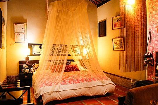 房间里的布置,十分温馨,舒适花梨木双人床、瑞士人体工学床垫,冰箱、冷气、电视、无线上网,每个房间都附有独立的、干湿分离卫浴,居住起来,没有老房子的湿气和居住的逼仄感。最喜欢的是天井,晴朗的天气下,坐在天晴里纳凉,感受金门这座小岛被时光封存的岁月。