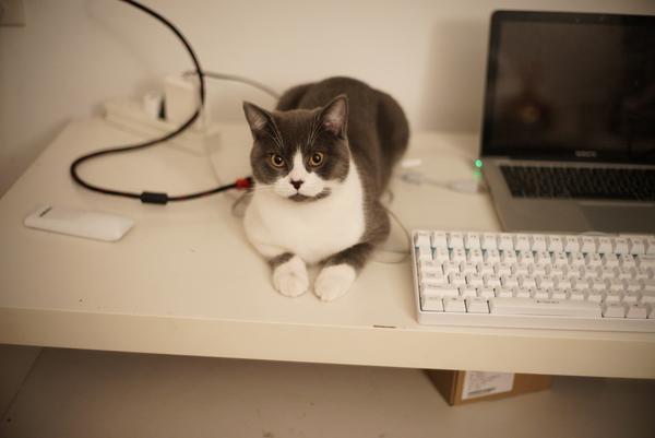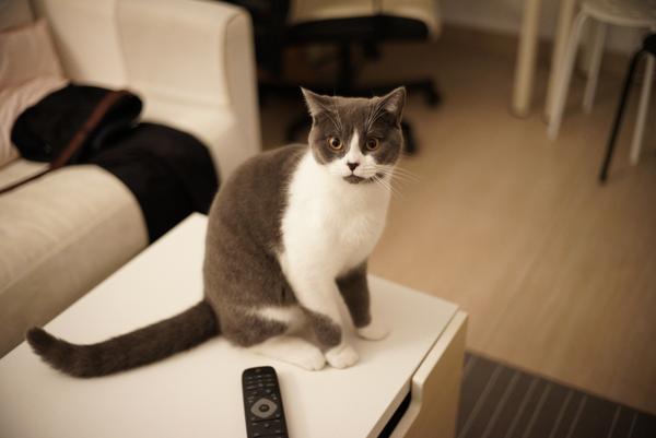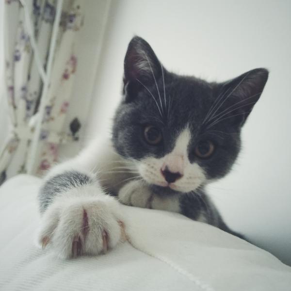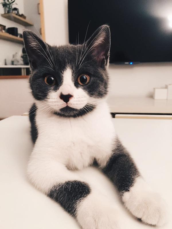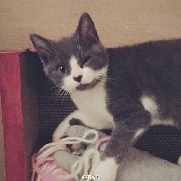 其本上他是一只特别省心的小猫咪,第二天回家的时候已经黏在我后面,只要我消失在他视野范围内就会喵喵叫着找我,找到了就坐下来歪着脑袋看着我。因为之前和姐姐妈妈生活,有很多很好的生活习惯:会用猫砂,不乱伸爪子,不翻垃圾桶。基本上他做错事了,咬电线啊,抓纸巾啊,我拍他脑袋骂他他就知道错了会躲起来,过一会忘了就又出来找你。把他一个人放家里也不担心,回到家东西都整整齐齐的……