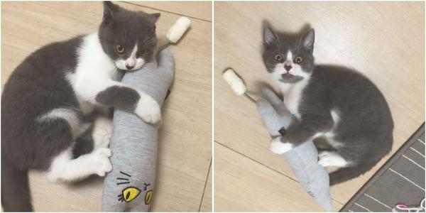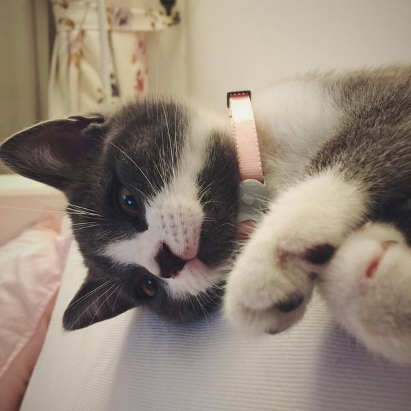 回家心急火燎地网购了猫厕所,猫砂猫粮猫碗项带,后面又买了各种药品和玩具,虽然知道他是男孩子,但是还是全部给他买了粉红色,原喂主说他性格很乖巧像小公举,没有姐姐那么调皮捣蛋,我决定继续把他当小公举养哈哈哈。