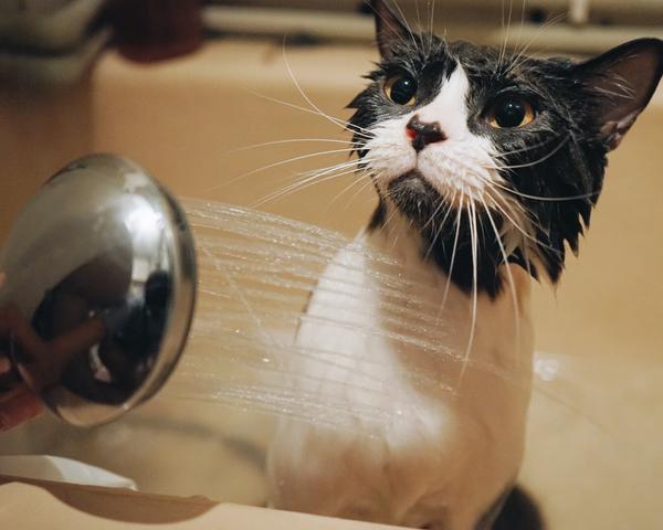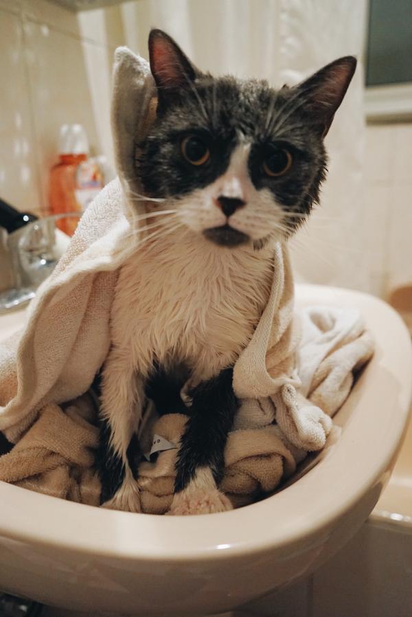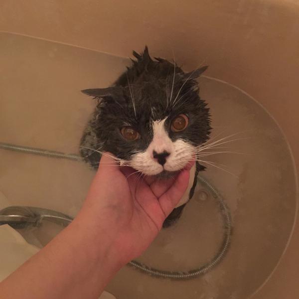 一般猫都会很怕洗澡……但是棒呆大王主要是。。用眼神表示他的不乐意,身体上不做任何反抗。
