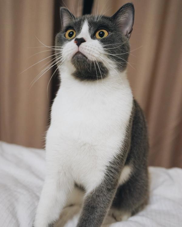 9月16日更一下:最近怀疑棒呆的智商了……昨晚没开空调开着房门透气,他就爬上来想和我一起睡,然后床边和墙之间有缝他一脚踩空掉下去有爬不上来,扒拉着床单扒拉半天上不来……已经不是第一次了,走沙发也会走着走着滑下去……分享一张周正的证件照:看起来还是很聪明的样子