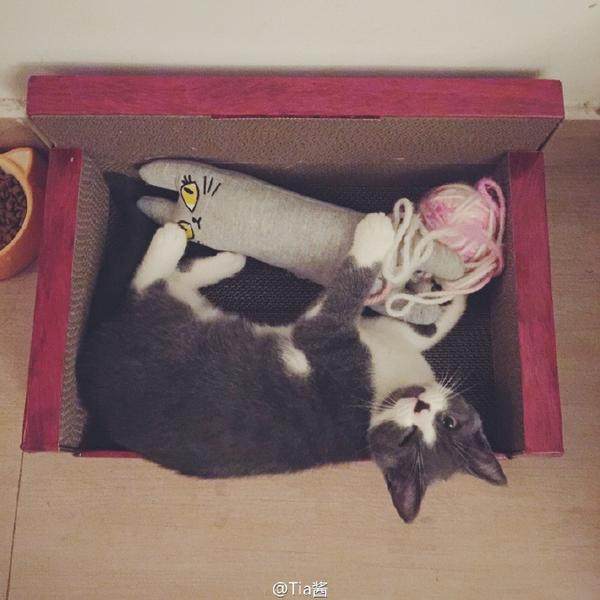 昨天棒呆在北京的干妈给他寄来了猫爪板……他很迷醉的玩儿了起来
