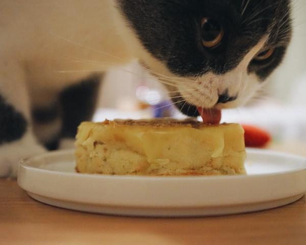 蛋糕呈上来了,鸡肉和羊奶粉做的,嘎嘣脆