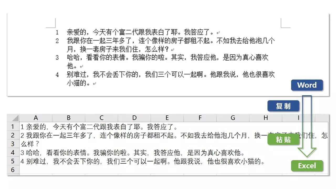 Word 排版文本可以复制到 Excel 单元格上; ❻