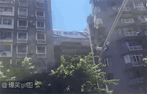重庆轻轨2号线在穿过居民楼时,不知哪户人家的被子掉在轨道上,于是轻轨驾驶员只好停车开门,用棍撩撩被子……