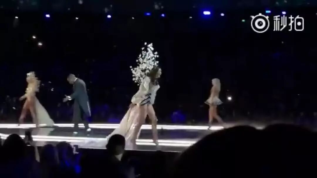 且不说摔倒前,因为和观众互动用力过度,过嗨踩到了自己的衣服,导致摔跤。