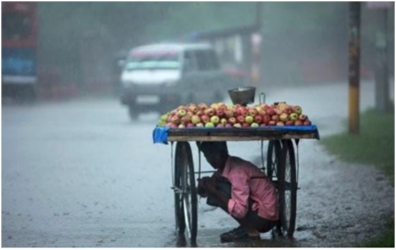 你会看到突降暴雨,一个无处躲藏的小贩蜷缩在自己的小车下,窘迫又心酸。
