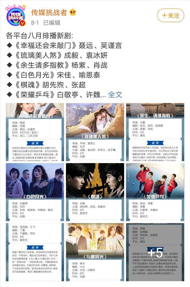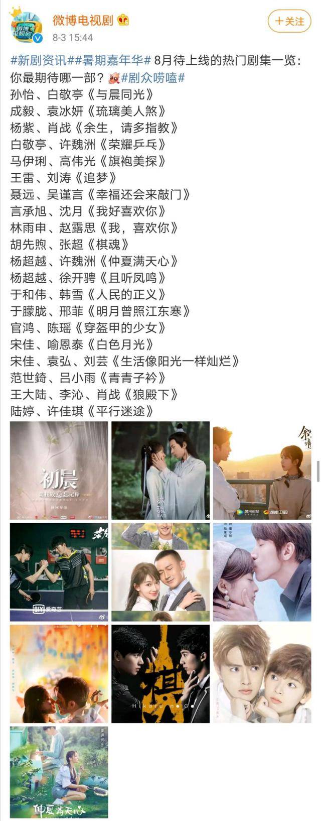 而各平台的八月排播剧名单更是成了近来最关注的热点。