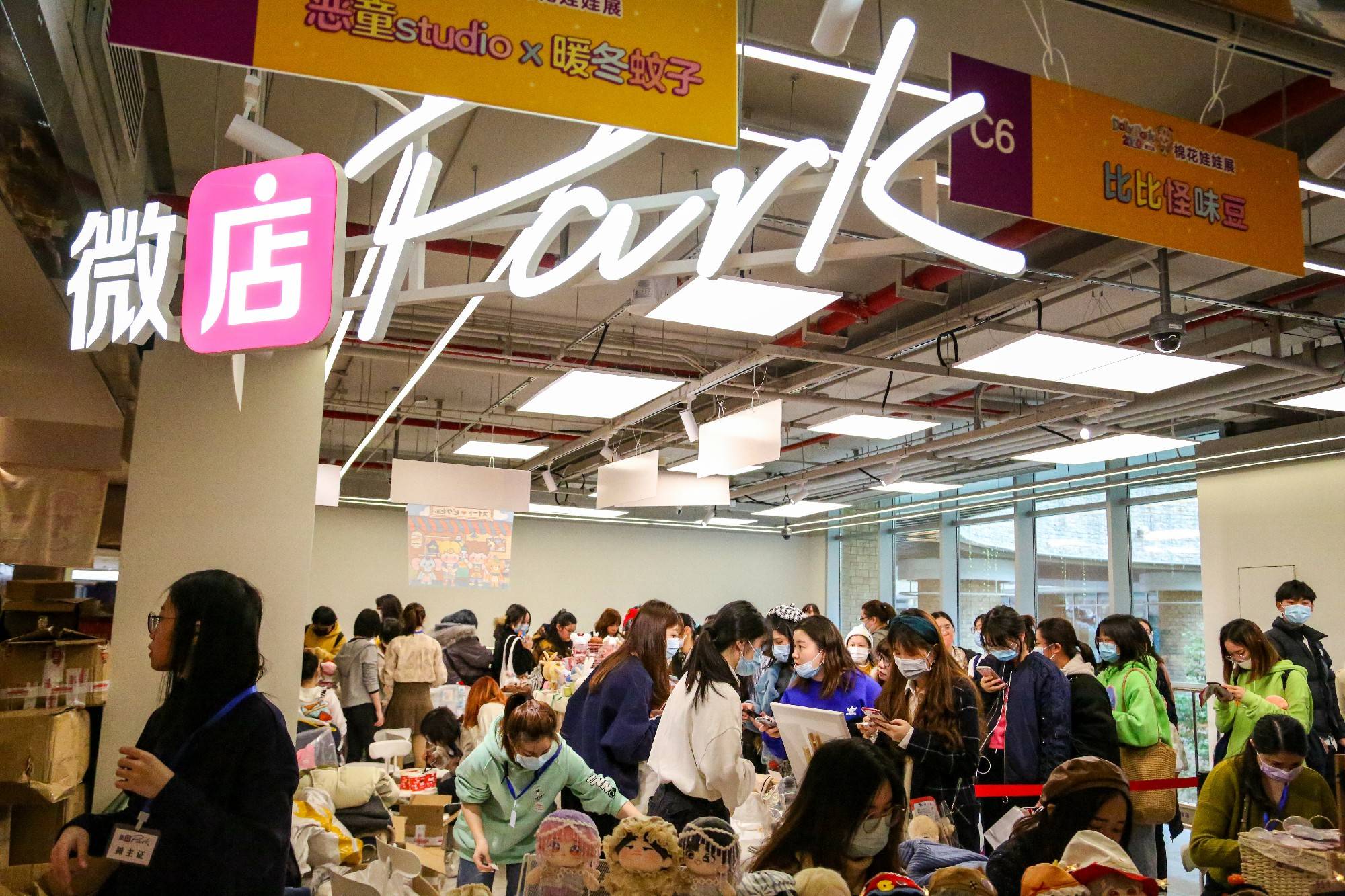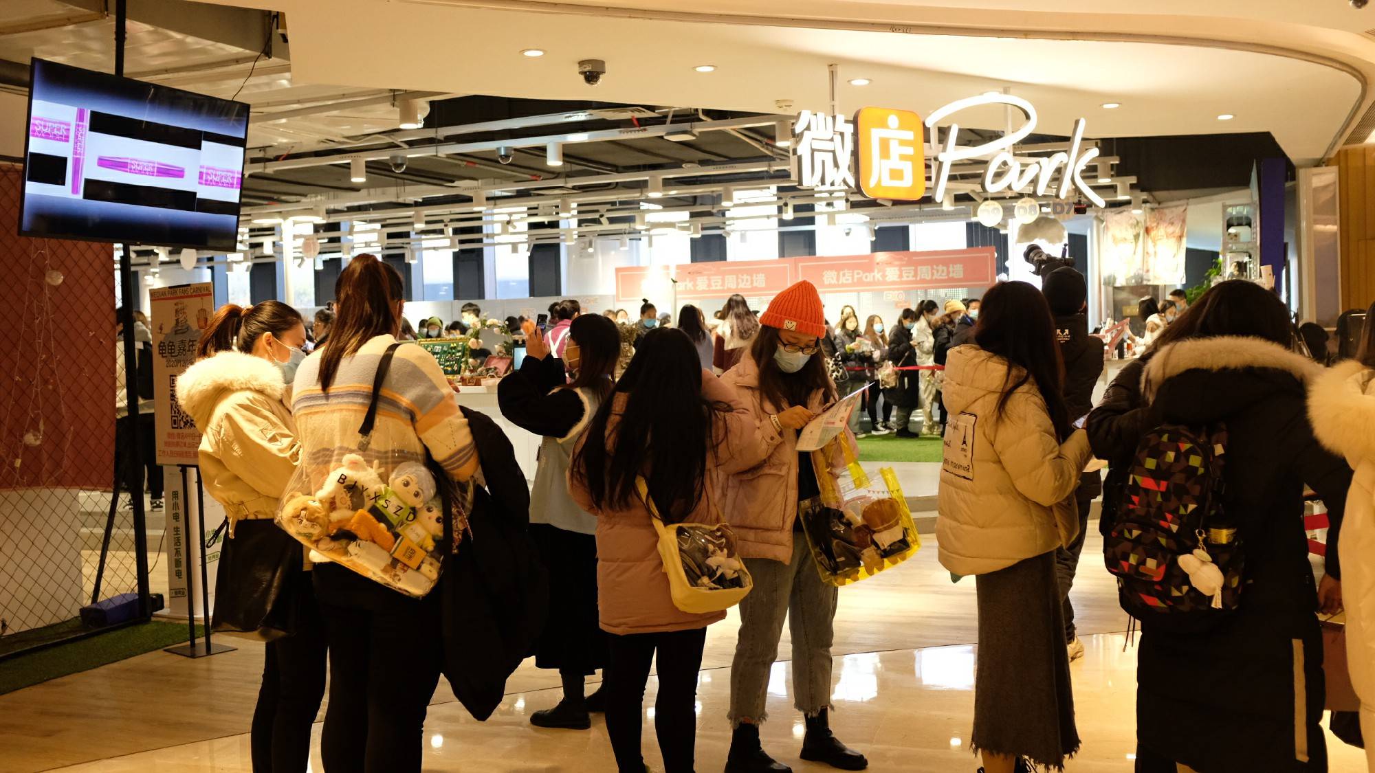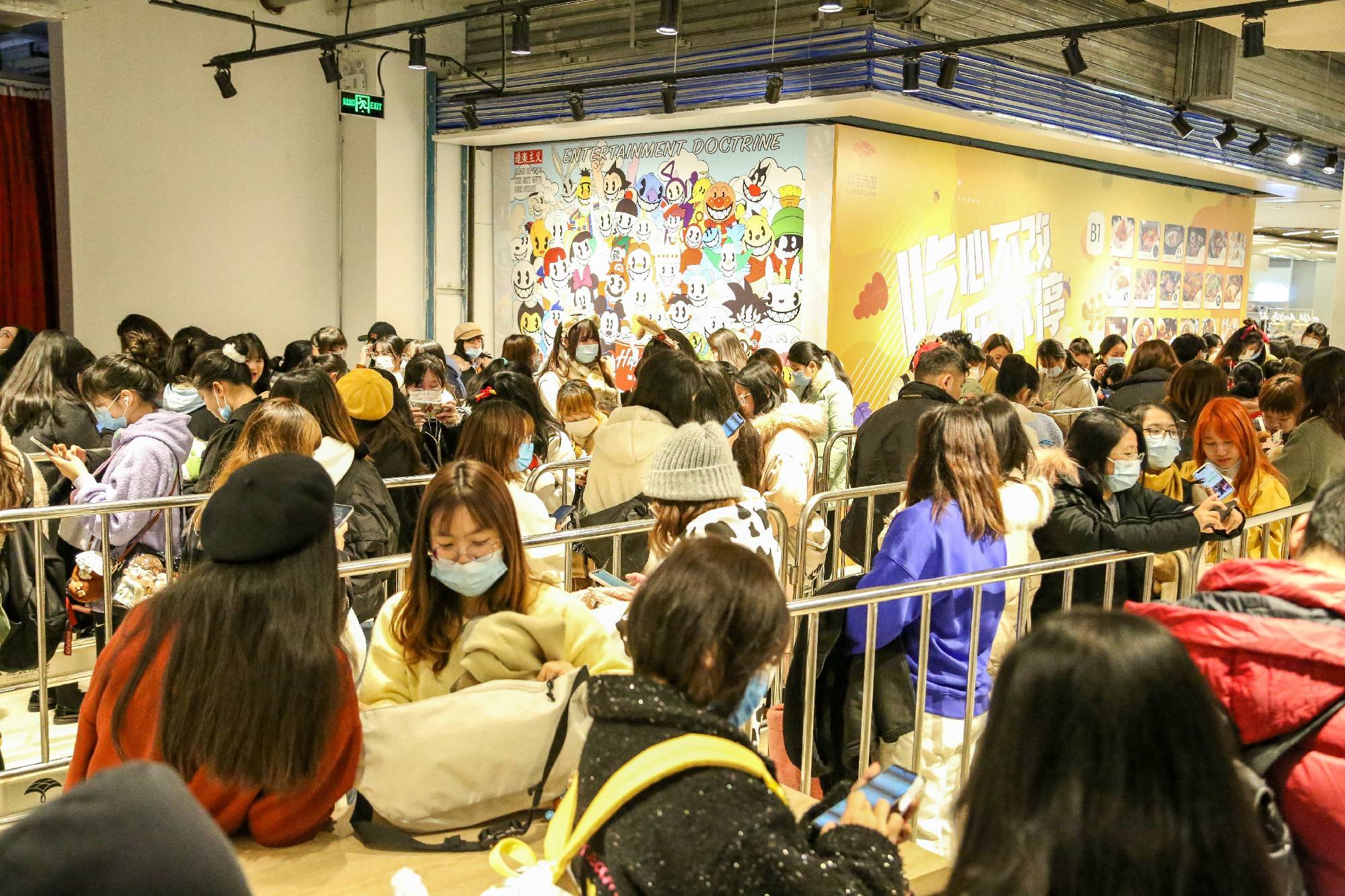 12月25日,上海虹桥丽宝乐园的微店Park,迎来了国内最大的一场线下“娃展”,参观者从全国各地赶来,有人为了尽早入场参观,甚至从凌晨起就在商场外排起了队。前来参观者多位年轻女性,早上十点,展览开场之时门口已经排起了百米开外的长队。这样火爆的线下场景在整个2020年较为少见。