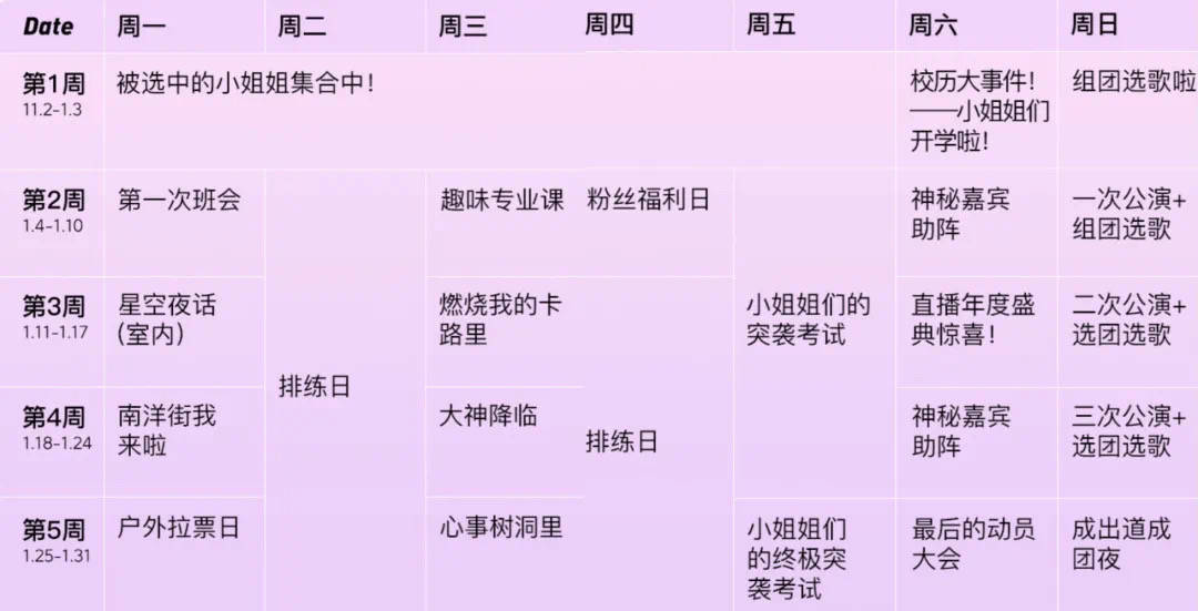 经过初舞台评级,1月3日,49组选手通过“弹力火箭”游戏进行队员抢夺战,组成A+2(B+2C)的组合开启第一周的训练。
