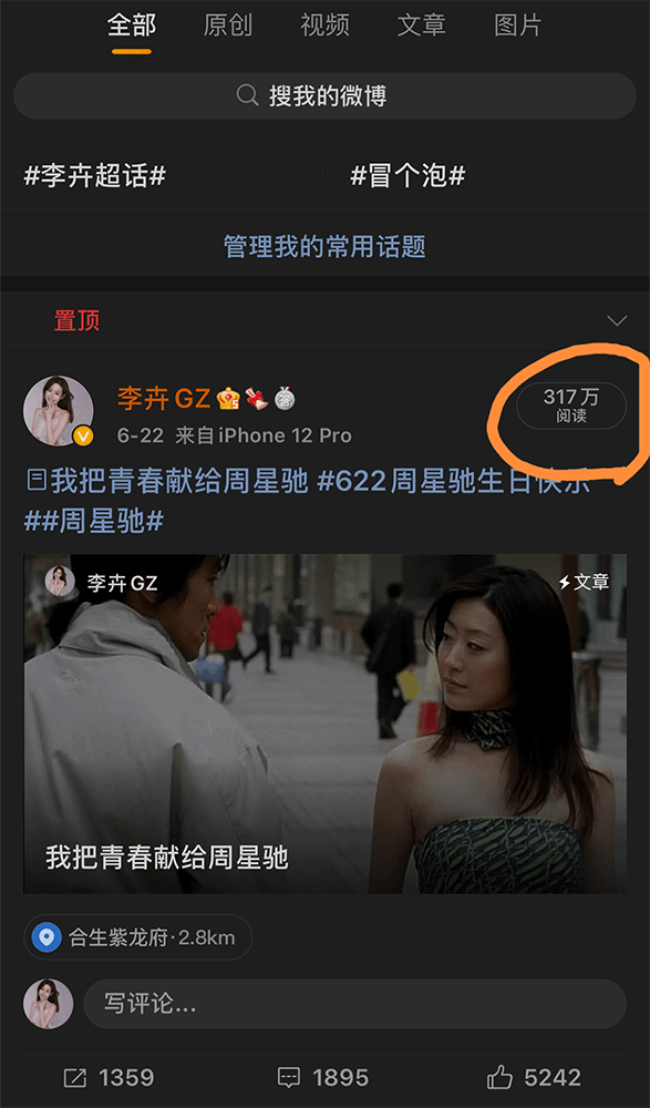 顶着周星驰签约的内地第一位星女郎头衔,广州女孩李卉终于在6月22日于自己微博账号,发表了「我把青春献给周星驰」连载小说的第一篇,长篇文章短短三天就有将近两百万的观看次数,单篇微博三百多万阅读量,对于离开娱乐圈多年的李卉而言,这第一篇千字港漂回忆确实成功的吸引不少的目光,在这一篇名为「初见星爷」的文章中,解密了当年声势浩大的「少林足球」女主角海选幕后趣事,以及李卉见到偶像星爷的内心情绪变化,小女孩真挚的情感记忆,还原当时的生动文字描述,让网友看到了当年仅有17岁的李卉,跟许多花季少女一样天真烂漫,文章也勾起了许多星迷的回忆,更满足大众一窥神秘低调星爷私下的一面。