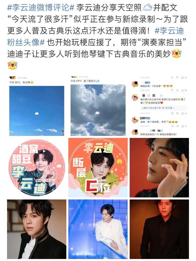 节目开录以来,李云迪还多次上线,幽默的以“天气预报”的形式分享自己的录制近况,“今天33度,流了很多汗”还被网友猜测是在努力练习唱跳舞台,洒下辛勤的汗水哈哈哈~