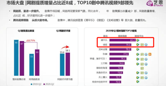 当然还不仅如此,2020年,他的经侦剧《猎狐》自开播以来收视强劲,双台收视率屡屡破2。网播集均过亿;另一部古装题材的《清平乐》收视率为2.483,CSM59城最高破3,平均破2。