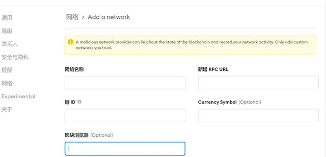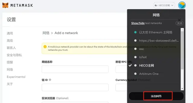 · 登录 MetaMask,点击网络,选择“添加网络。