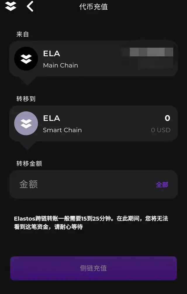 3.输入充值金额,确认信息后,点击“侧链充值”,等待充值完成即可。