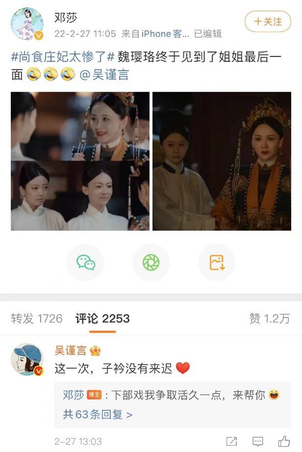 由王威、白云默导演,许凯、吴谨言领衔主演,邓莎友情主演的古装励志美食大剧《尚食》正在芒果tv火热播出中。剧中人物颇具传奇色彩、剧情跌宕起伏,被观众称为又是一部品质口碑之作。近日《尚食》迎来首个高潮,朱棣逝世,邓莎饰演的韩庄妃下线。