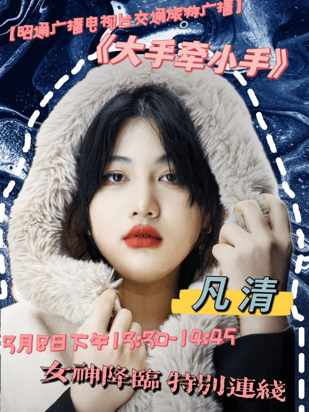 3月8日,凡清连线@昭通广播电视台交通旅游广播《大手牵小手》节目畅聊她与音乐的故事。