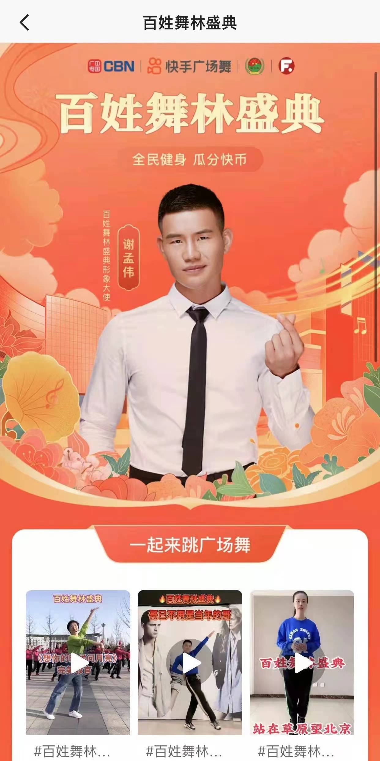 此次活动期间“嘎子”谢孟伟也将在“快手”平台以“形象大使”身份,录制、推广活动短视频并同步在直播间宣传,全面助力“百姓舞林盛典”活动。