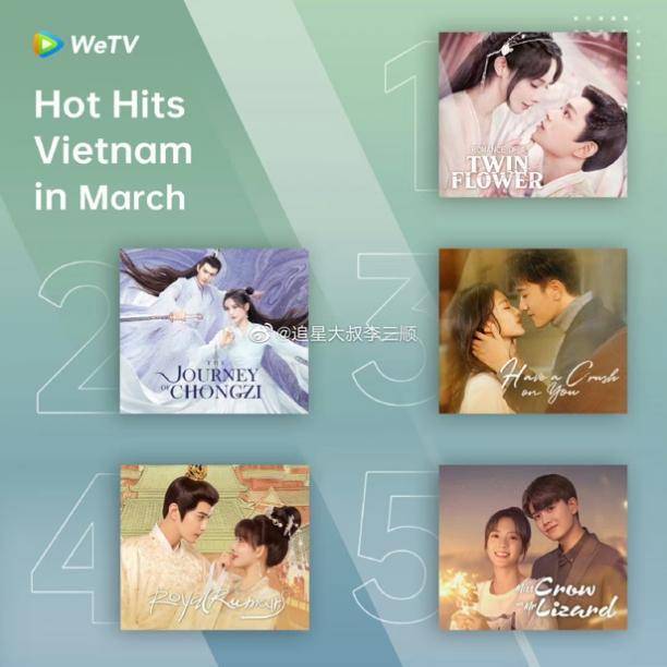 《春闺梦里人》的热度不仅在美国平台居为榜首,在越南、韩国、马来西亚等地的热度都在top席位。