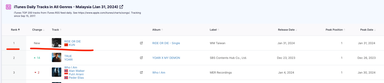 在酷狗音乐平台,不仅在飙升榜、80后、00后热歌榜、潜力榜、内地榜上均取得第一的好成绩,也还在蜂鸟流行音乐榜、新歌榜、TOP500榜单中均入榜高位,更是在海外市场斩获了ITunes马来西亚地区榜单的冠军,为中国音乐在国际舞台上赢得了一席之地。这一系列的成绩不仅仅只是数字,更是对蔡徐坤音乐才华的高度认可。