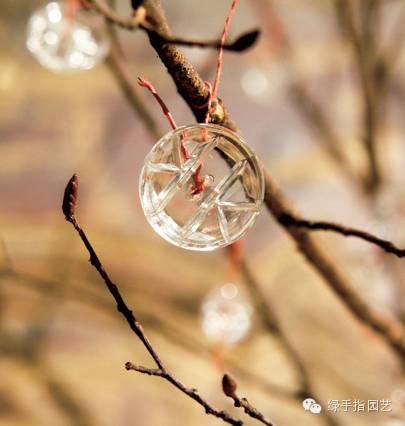 在枝头悬挂复古感的纽扣。随着阳光变化或是蜡烛的照耀,成为天然发光体。