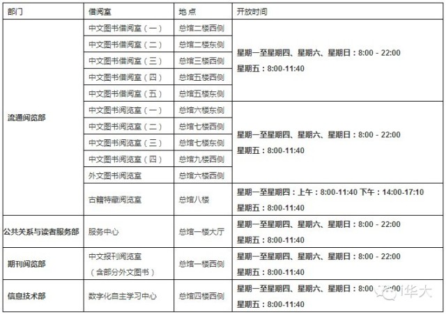 知道了图书馆的功能以及各个功能区的位置,还有一个必不可少的就是了解图书馆开闭的时间~!