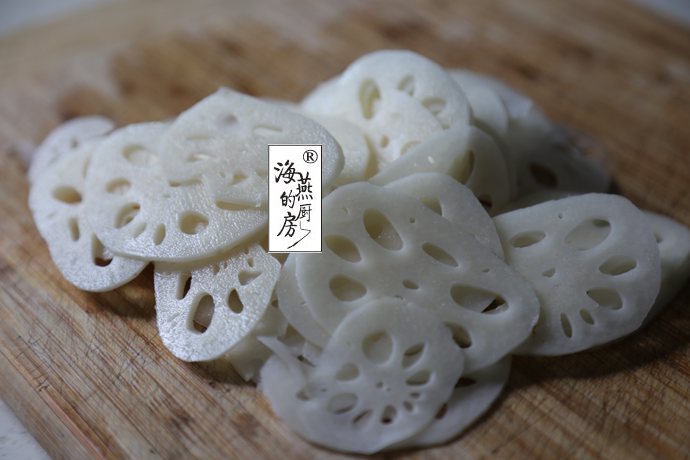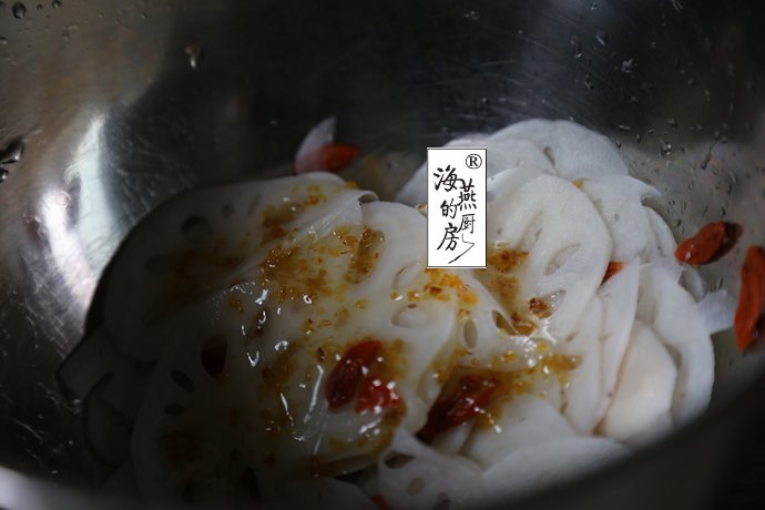 焯好的藕片清水冲洗过凉