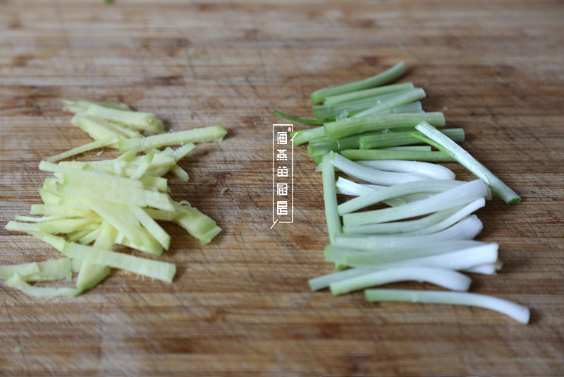 首先把生姜切成条丝状,葱白切成均等的段状