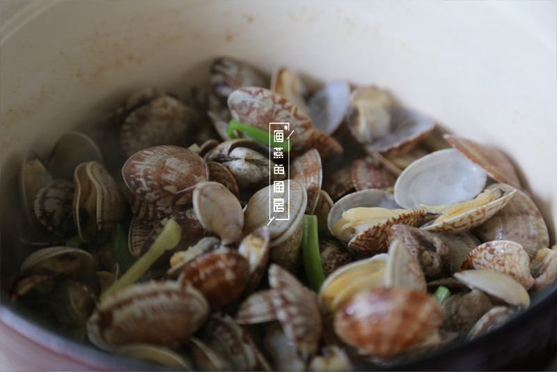 揭开锅盖后蛤蜊已经大部分开嘴