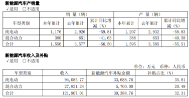 在半年报中,亚星客车表示因为采购付款减少,新能源补贴增加,也使得公司经营活动产生的现金流量净额增加,当前依然是新能源汽车的寒冬期,亚星客车依然能保守住自己的市场份额,总体销量有所上升,上半年亚星客车累计生产量2004辆,同比增长19%;累计销售量2016辆,同比增长20%。