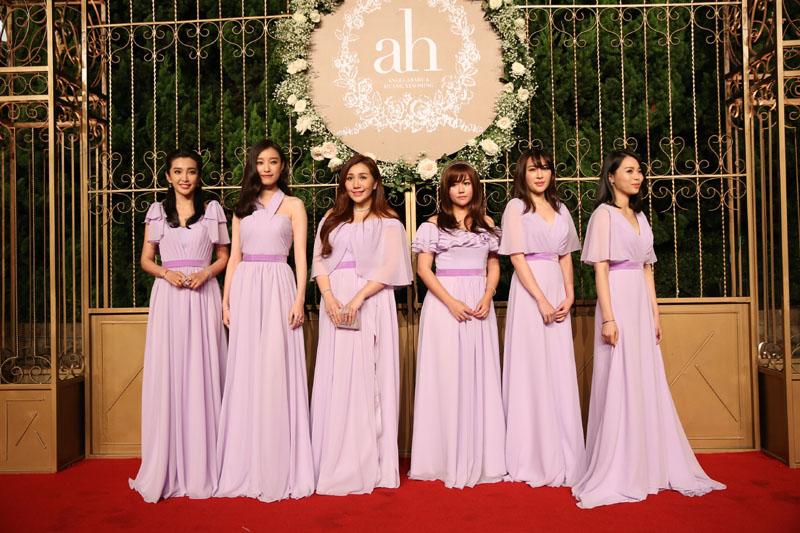 每位伴娘的礼服都是单独定制的,非常合身,淡紫色既显得美好,又不抢戏,完美!