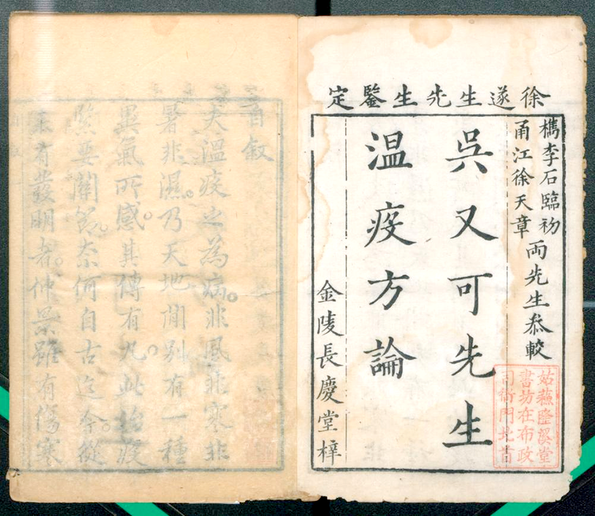 温疫论二卷(清)吴有性撰 清康熙三十年(1691)金陵长庆堂刻本。
