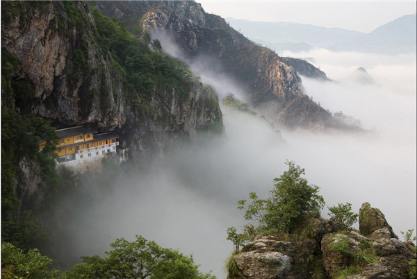 峡谷景廊景区,离县城仅四公里,狭长4.5公里,狭处仅10余米,宽处160多米面积为16.7平方公里。两岸群山翠壁,山间飞瀑多姿。峡谷景廊步步皆景、四季各异。有诗曰:疑在巫峡望巫山,又从灵峰到灵岩。林泉壑瀑两廊画,天开画图入寰。”故称峡谷景廊。