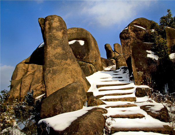 玉苍山位于苍南县城西北20多公里,景区集奇、秀、幽、野于一体,形成绚丽多姿的山水画卷。这里无处不石,无石不美,大小错落,各具神态,妙趣天成。仙人碇步、石瀑岩、石海覆舟、望天龟、摇动岩、锦绣谷等景点多达108处,是大自然鬼斧神工造就的奇石世界。