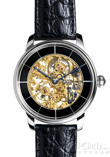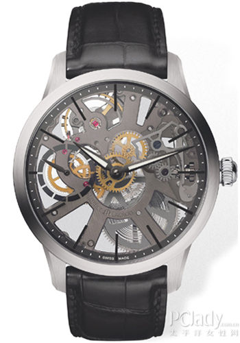盘面整体镂空,从背面观赏,自动陀也被镂空处理,并雕以装饰花纹,非常漂亮。很多人觉得这只表技艺高深,神秘莫测,估计价格也难以接近,事实上,以镂空为表盘设计的这只表不但非常上手,而且性价比高。