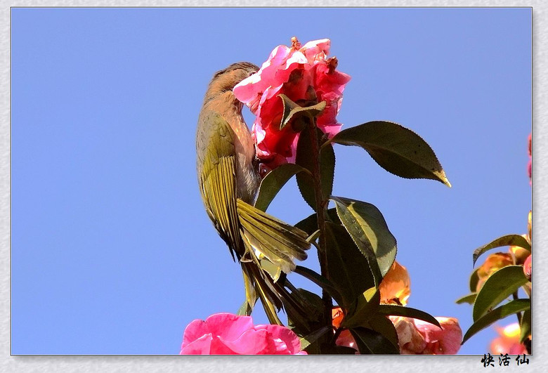 茶花是云南名花,品种繁多,因花大、花繁、花艳、花期长而为人们喜爱。世人都说“云南茶花甲天下”,可许多人都不知道腾冲是云南山茶的故乡,腾冲茶花甲云南。据介绍,来凤山茶花园母树林基地里栽培着100多个珍贵品种,有3000株形态花色各异的茶花树.茶花不仅在冬天里盛开,春天里,也依然含苞绽放。腾冲来凤山茶花园今年春节期间依然热闹非凡。三月的春阳暖洋洋的,古茶园里数不尽的茶花早已盛开。吸引大批游客驻足欣赏,纷纷在花间留影纪念。枝头茶花迎春怒放,游客嬉戏花间,笑语连绵。腾冲地处高黎贡山西侧,辖区内森林密布,到处青山绿水,景色秀丽迷人。拍鸟最省力当属来凤山和山下的茶花园。据统计有鸟类300余种。春节前后茶花盛开,是拍鸟的黄金季节。虽然我们不去泡温泉慕名前来拍鸟时,茶花已经开始凋零。而且年岁大了,没有带“大炮”。但在一个多