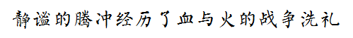 如果没有抗日战争的烽火,腾冲会是怎样?依旧是徐霞客笔下那个世外桃源与温柔乡吧。然而,惨烈的腾冲战役不仅使腾冲举世瞩目,也为这里打上了雄浑悲壮的印记。那是一种无处不在,又无从摆脱的沉重感。