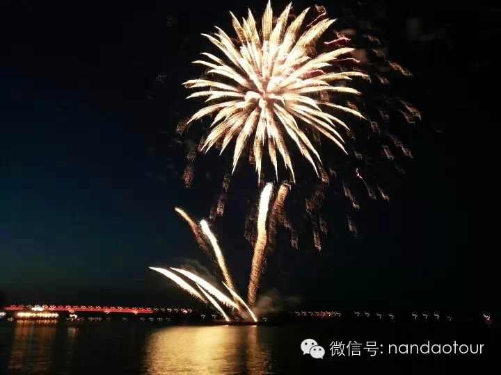 晚上还有美丽的烟花看~~海边的烟火,月光下的烟花,多浪漫!