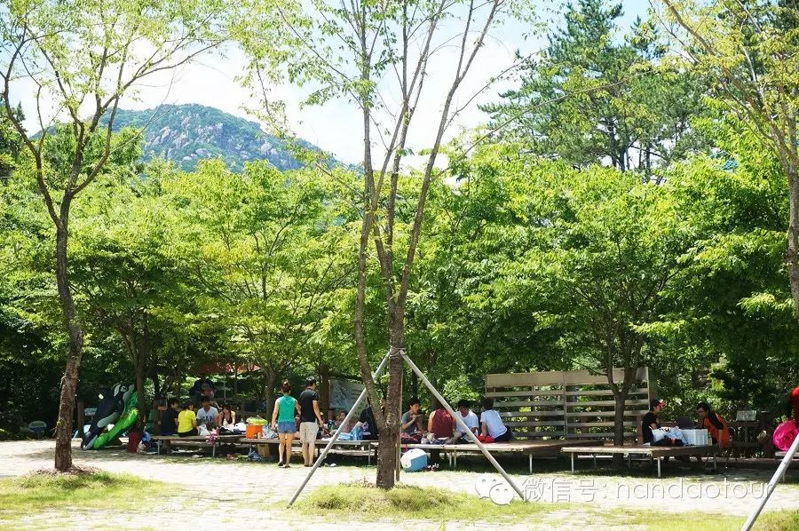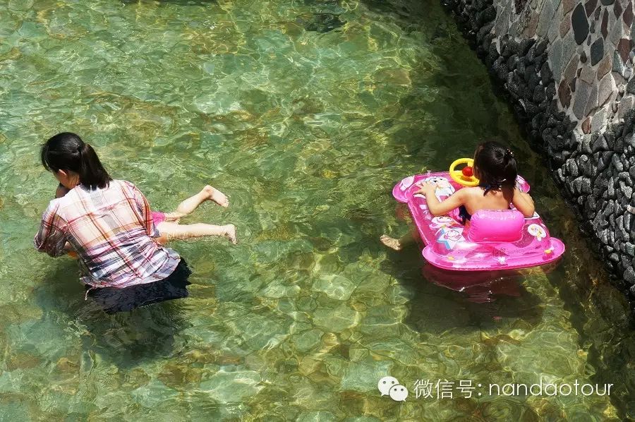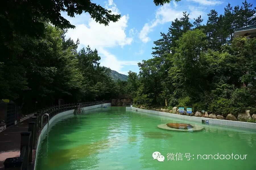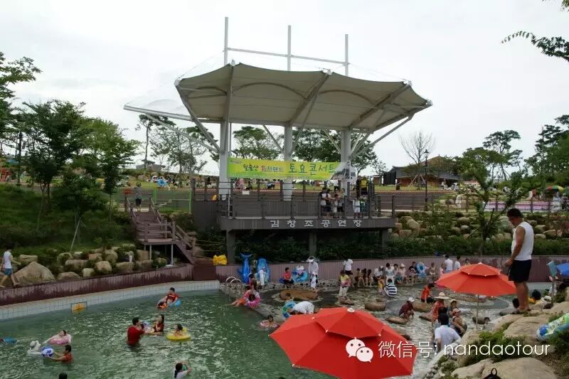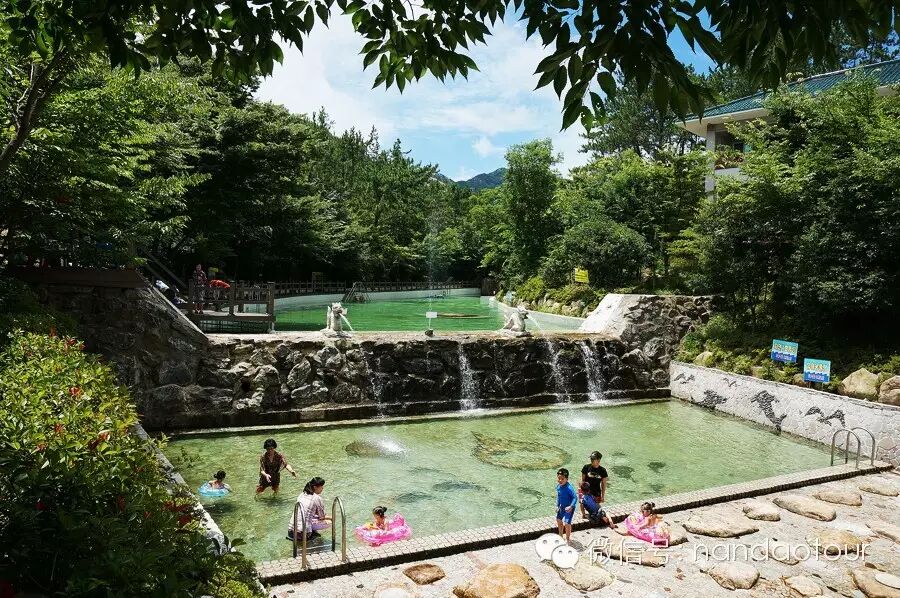 韩国灵岩月出山气璨乐园中来自月出山天王峰麦饭石的天然纯净水形成的天然野外游泳池!