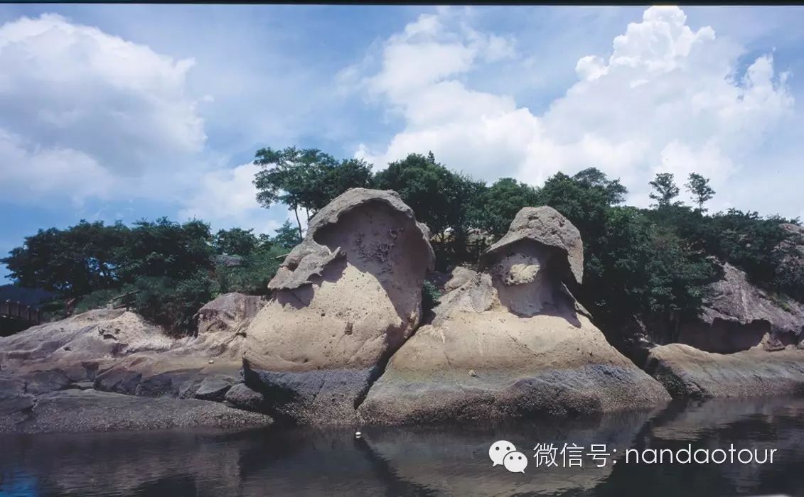 纱笠岩!大自然的杰作~由于波浪和流水而自然形成的奇岩怪石!只有小全南觉得这两科岩石萌萌哒吗?