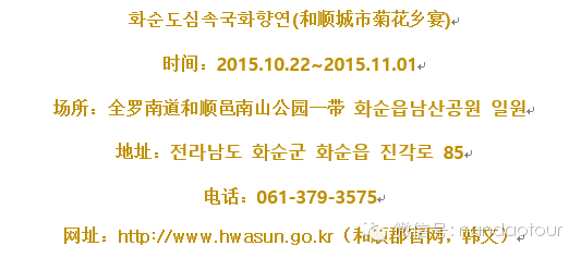 10月22号到11月1号,一起去韩国全罗南道的和顺赏菊花吧~~最后,温馨提醒!手机相册最好清空了再去哦~