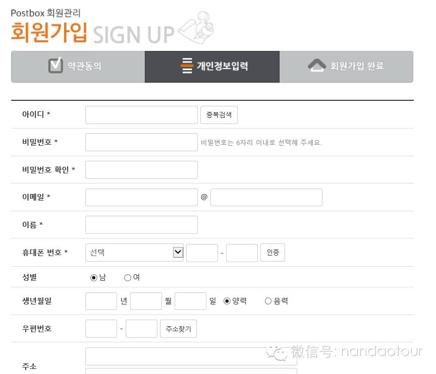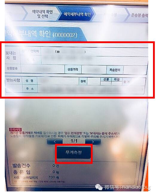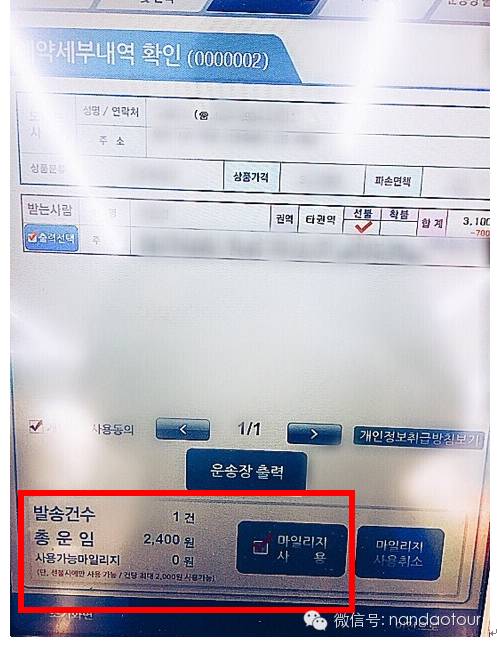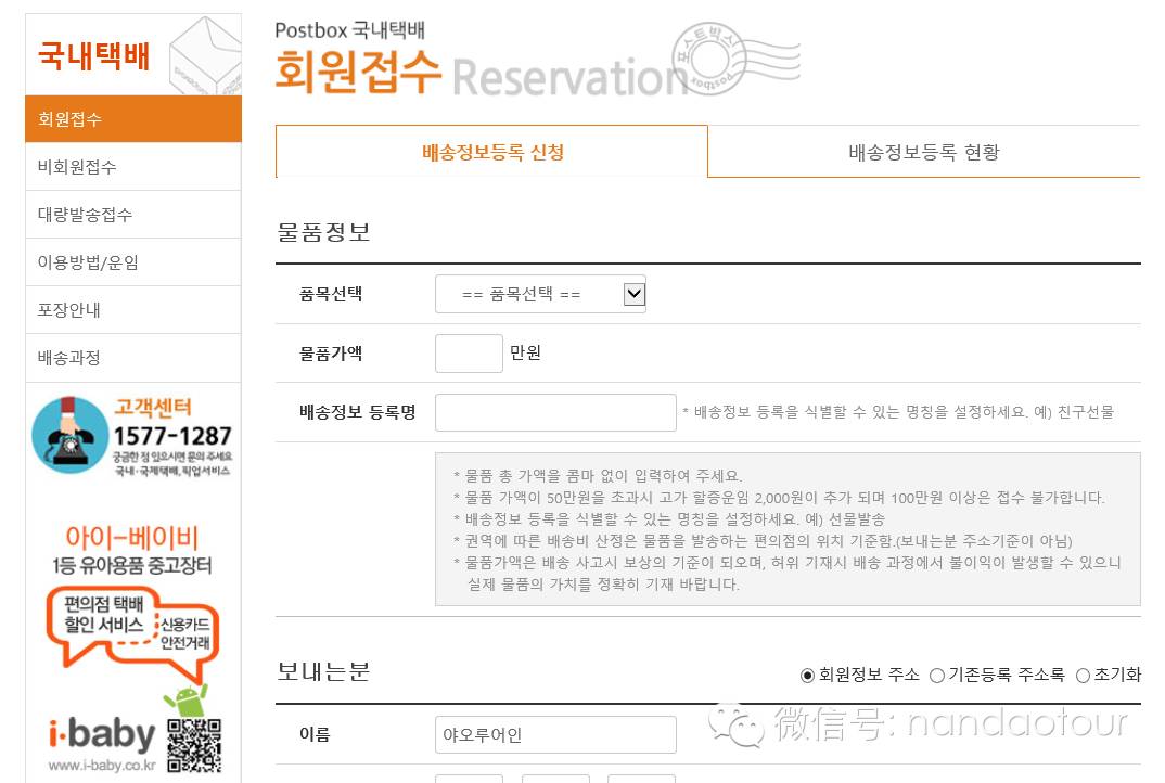 3,选择“회원접수(会员接收)”后,输入寄送物品的类型、价格等,以及接收人的姓名电话,邮编号码,住所,结账方式等,如果不想加入会员,可以选择“비회원접수(非会员接收)”,这时候要另外输入发送人的信息)