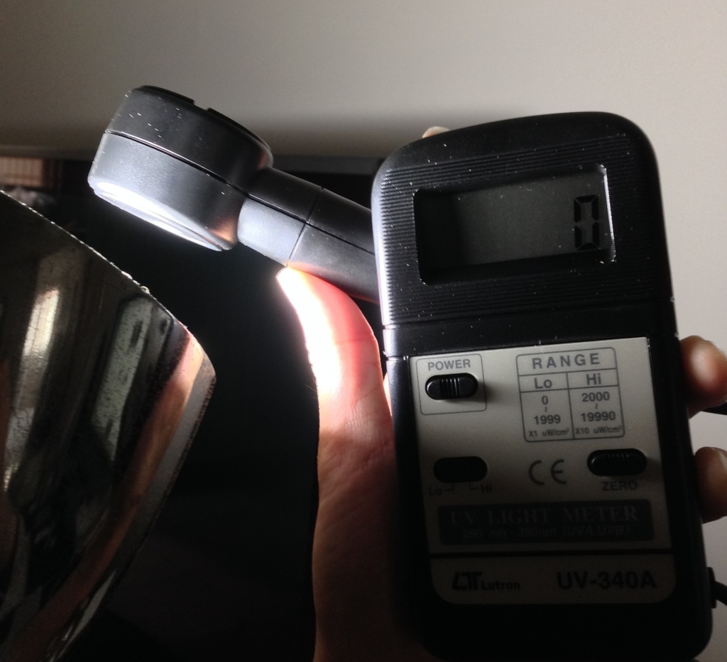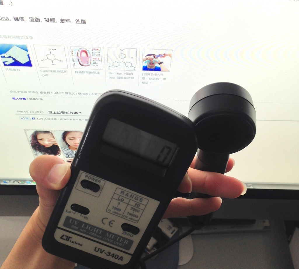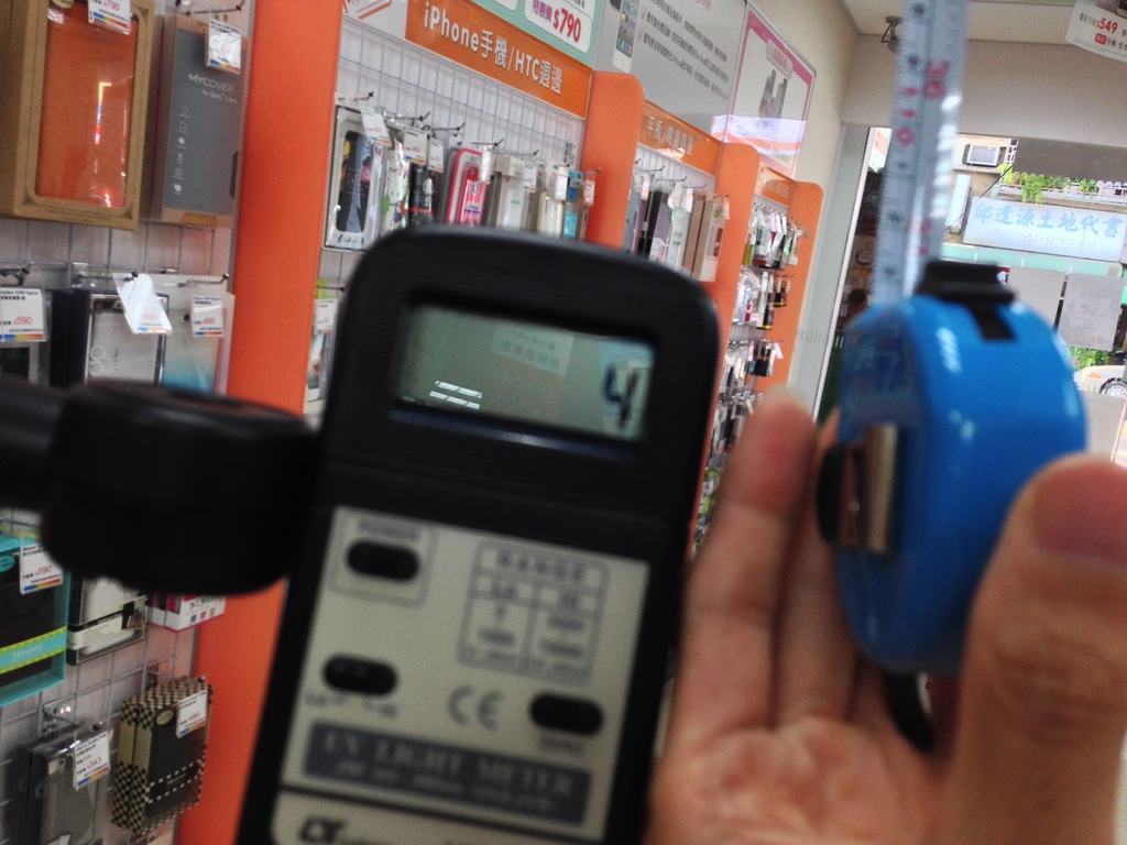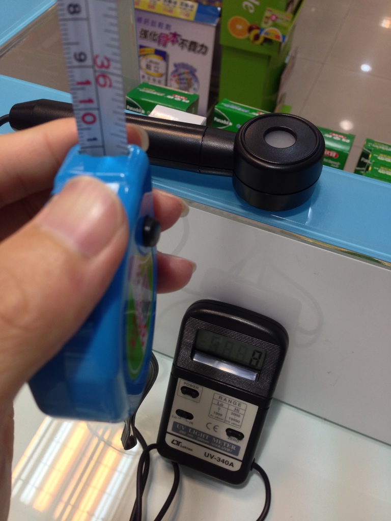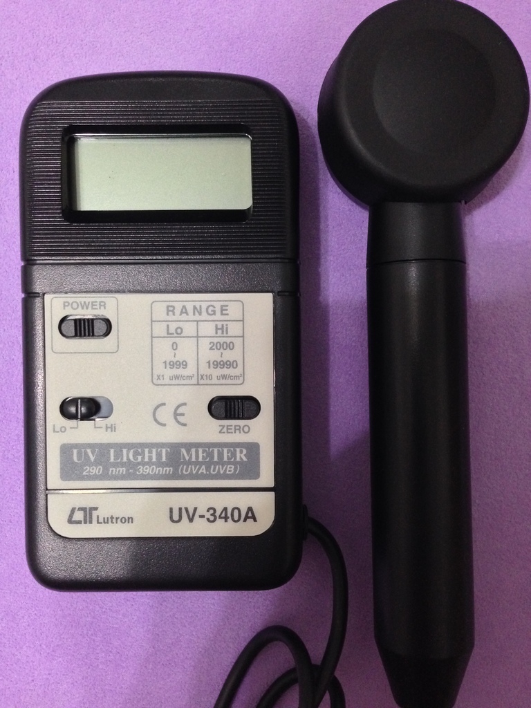 是的,這台機器叫做UV light meter,紫外線測量儀,可以直接測得290nm-390nm的光線強度,單位是μW/cm2