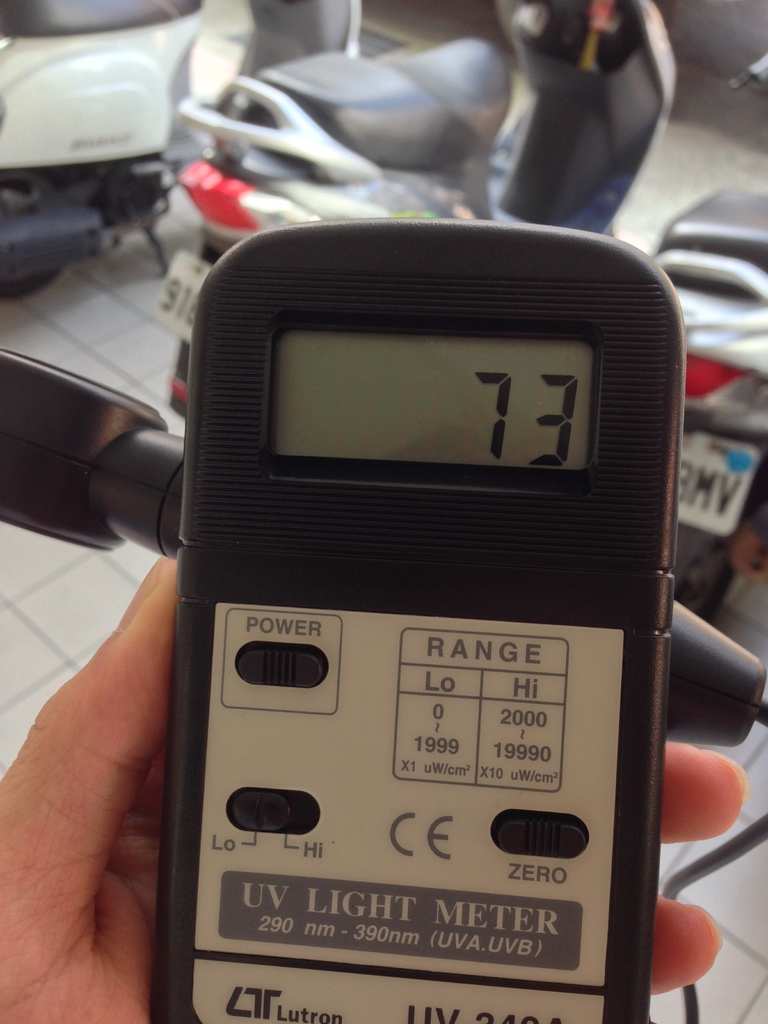 接下來,你可能會懷疑機器壞了,所以我決定來找一個最容易偵測到紫外線的光源.......陽光