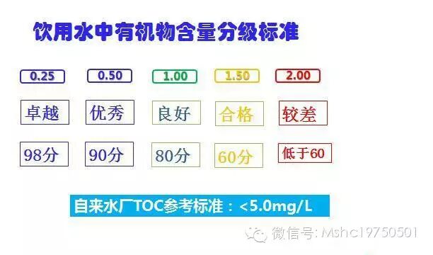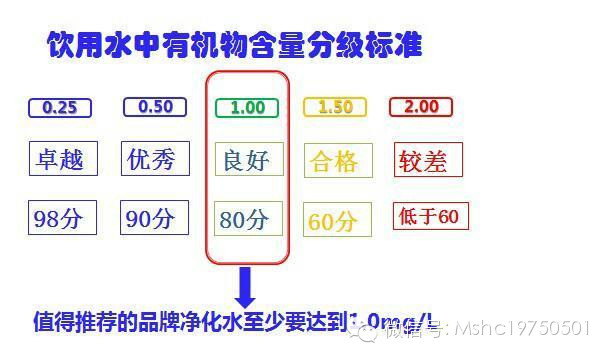 那么对于净水器来说,到底过滤能力有没有标准呢?当然有,不同净水器净化水的级别也不同,我们在买净水器时一定要看清楚它的净化级别是怎样的。作为一款净水器,至少要达到1.00(有机物TOC含量) 80分的标准,如果低于此标准,则净水器的效能就不敢恭维了。